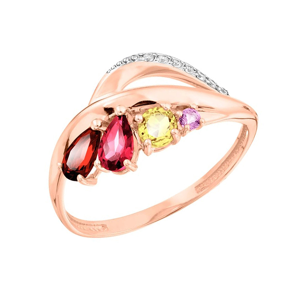 Женское кольцо из красного золота 585 пробы с миксом драгоценных камней