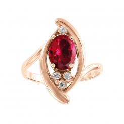Красивое женское кольцо из красного золота 585 пробы с рубином HTS