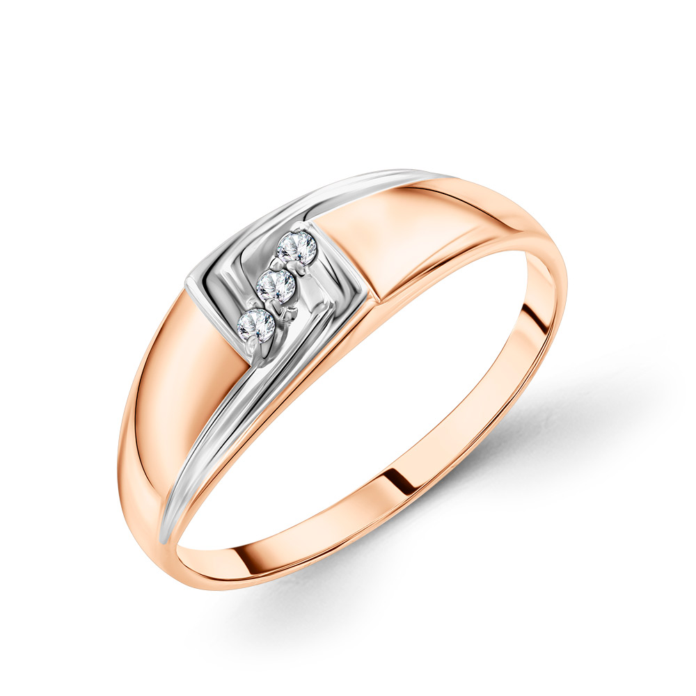 Женское кольцо из красного золота 585 пробы с тремя бриллиантами - общим весом ≈ 0,044 ct., ширина кольца ≈ 6 мм