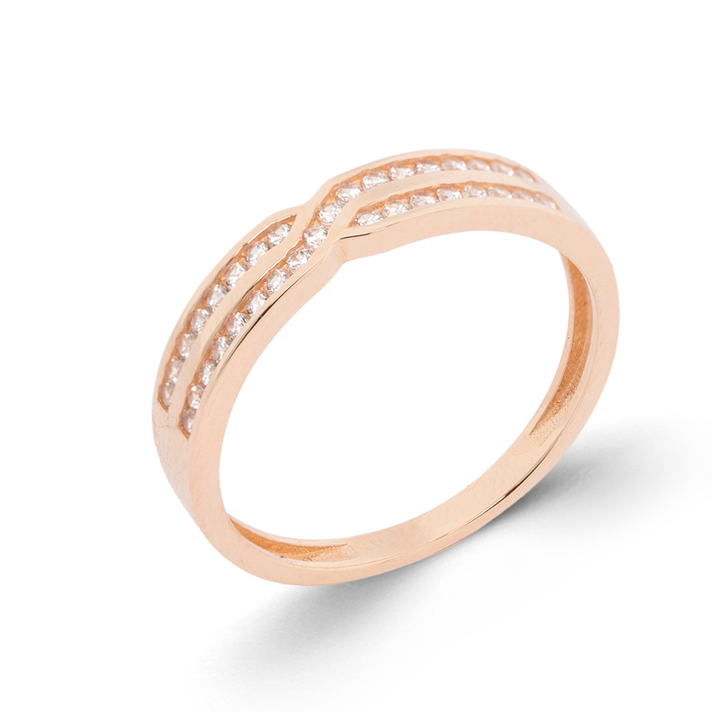 Женское кольцо из розового золота 585 пробы с двухрядными фианитами, размер 16 мм