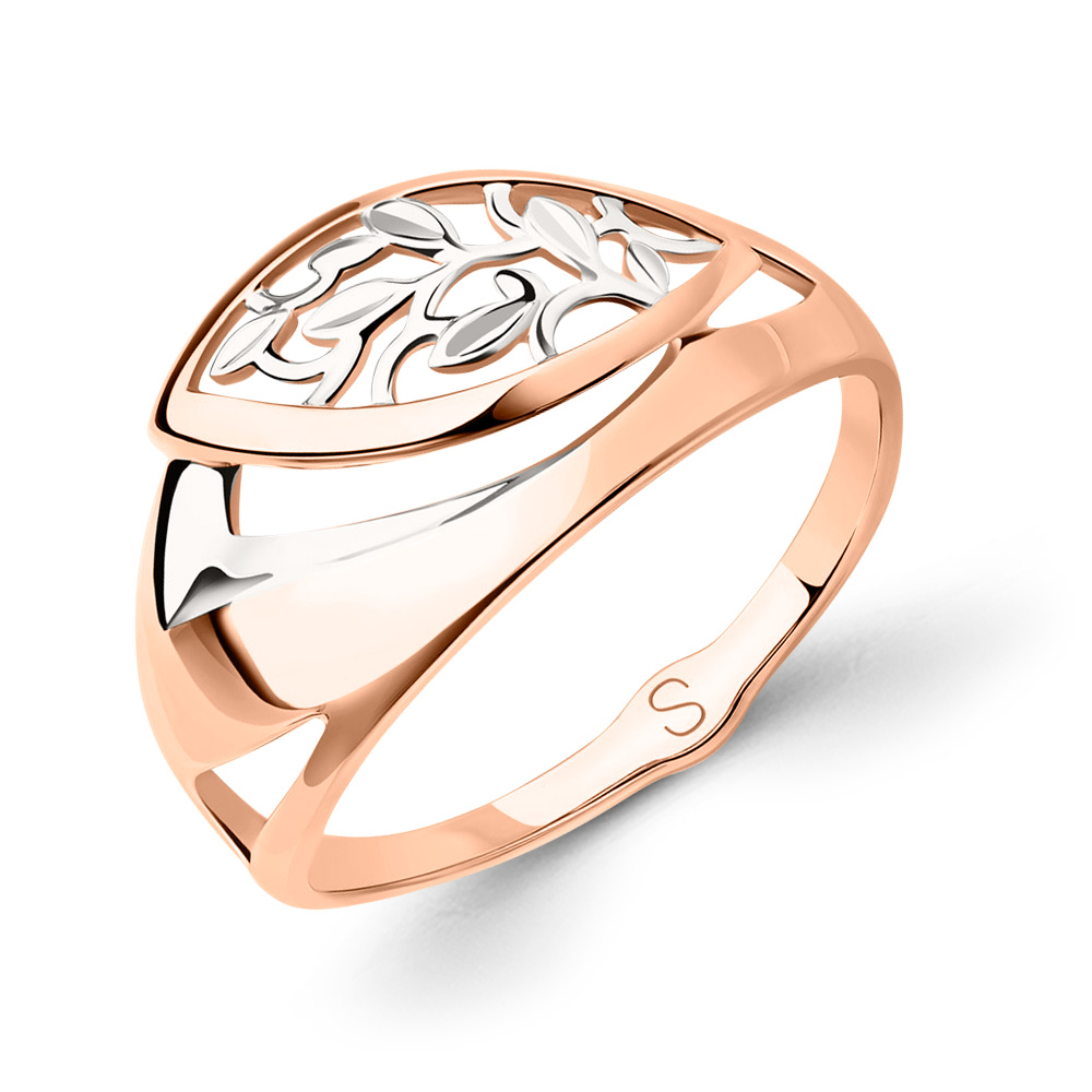 *** Если вы заказываете кольца размером больше 19,5 мм или меньше 16 мм, свяжитесь с нами по телефону. Элегантное кольцо из красного золота 585 пробы с изящным сквозным узором в виде листьев. Современный дизайн и легкость украшения делают его универсальным аксессуаром для повседневных образов и особых случаев.
