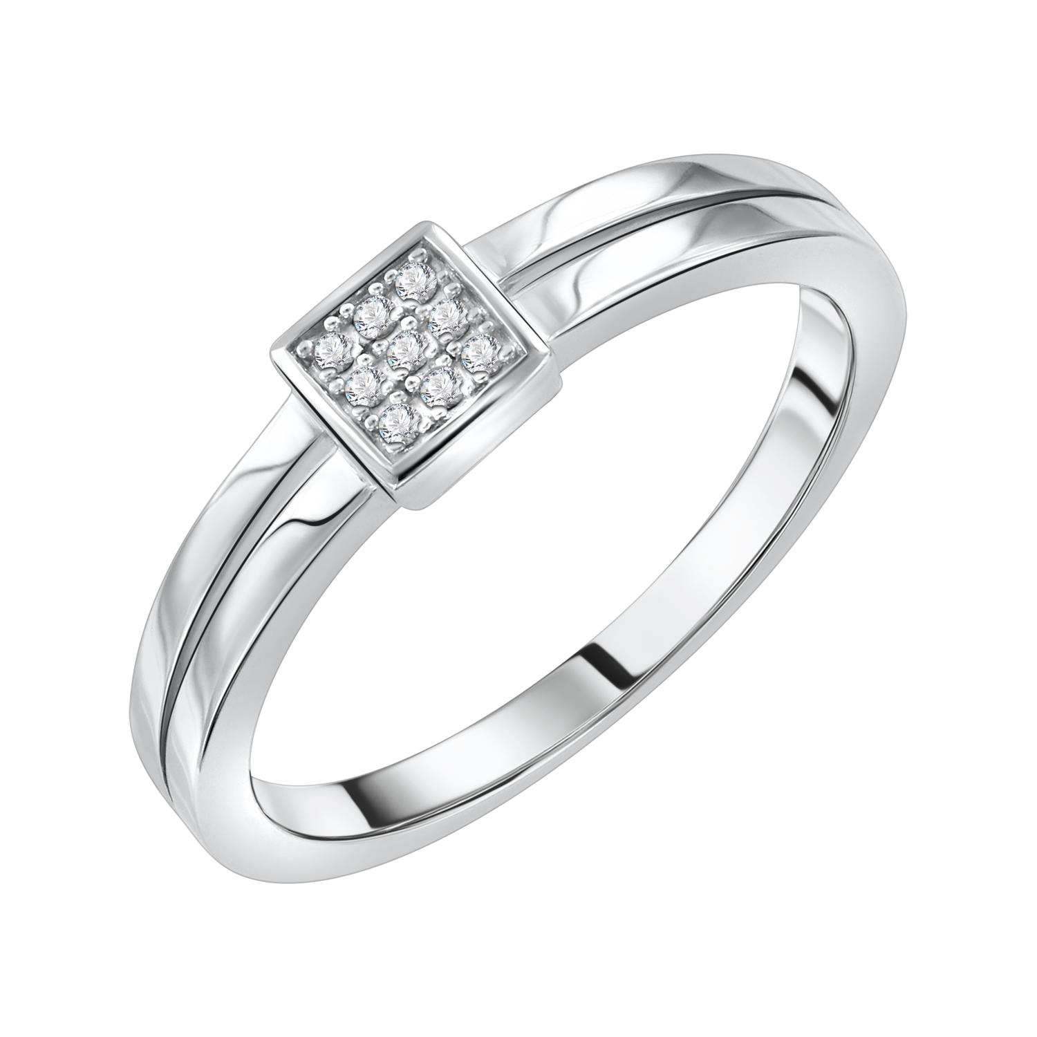 Элегантное женское кольцо из серебра 925 пробы с сияющими фианитами. Лаконичный квадратный декоративный элемент размером ≈ 5х5 мм придаёт украшению современный и утончённый вид.Идеально подходит для повседневной носки и особых случаев, легко сочетается с другими украшениями.