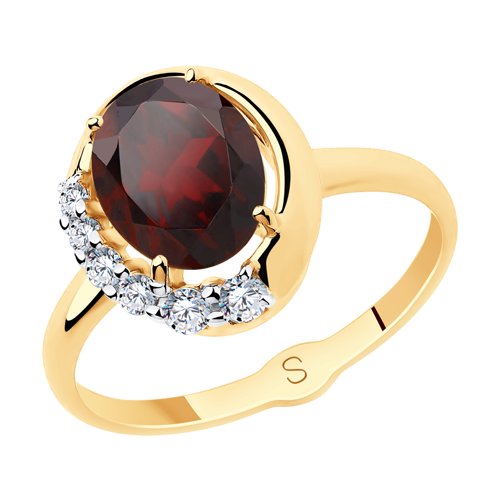 Женское кольцо из золота с гранатом и фианитами 585 пробы