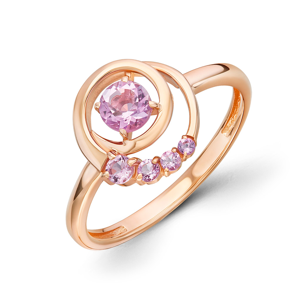 Элегантное женское кольцо из русского красного золота 585 пробы с аметистами нежно-лавандового оттенка.