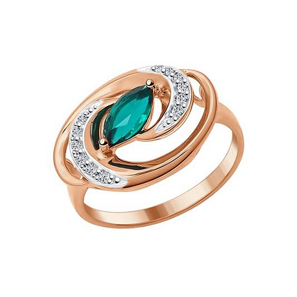 Женское кольцо из позолоченного серебра 925 пробы со смарагдом HTS от SOKOLOV