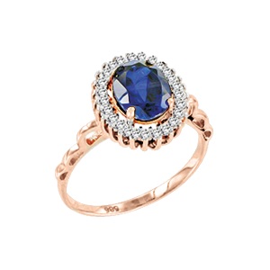 Золотое кольцо 585 пробы с гидротермальным сапфиром и фианитами