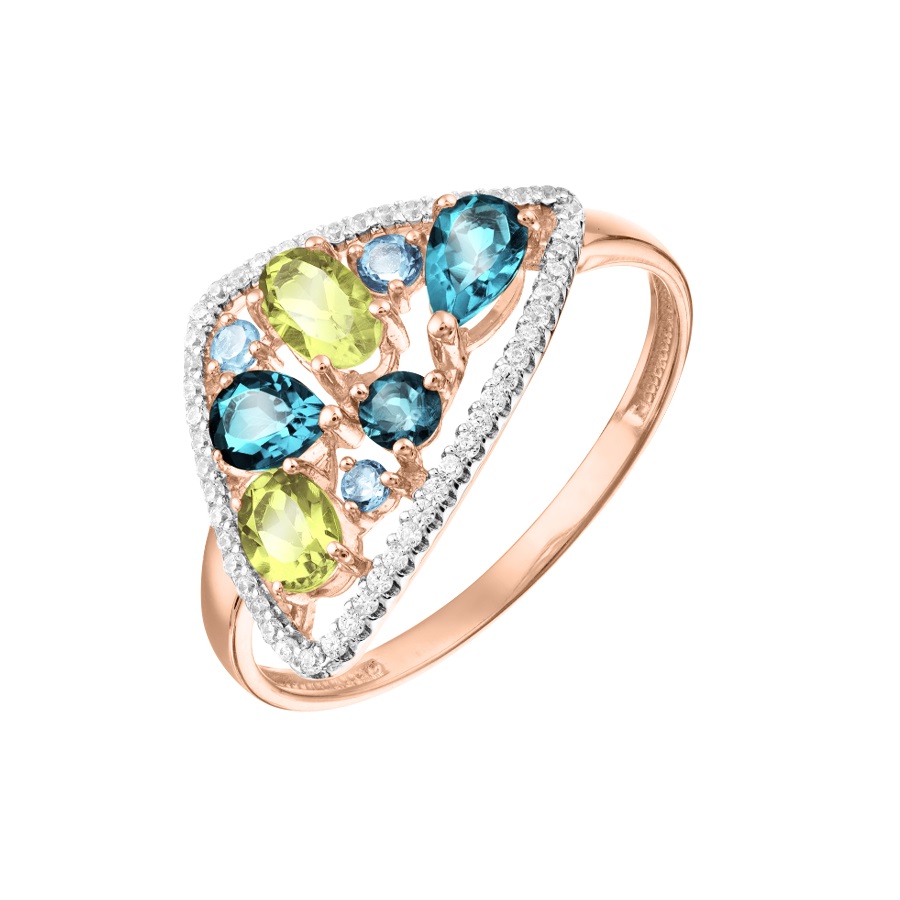Золотое кольцо 585 пробы с Лондон топазами, хризолитами и фианитами