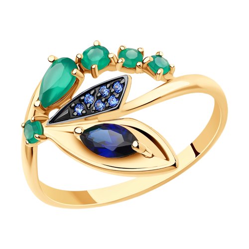 Золотое кольцо с агатами, корундами и фианитам 585 пробы