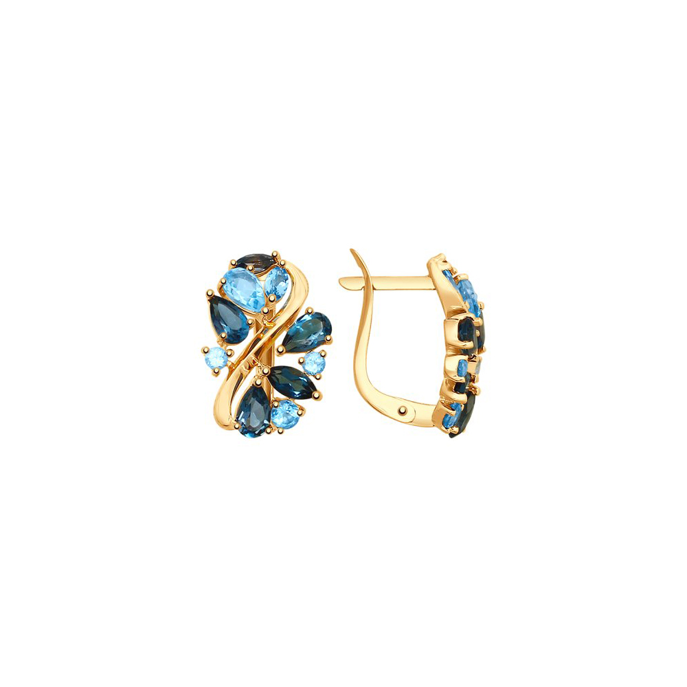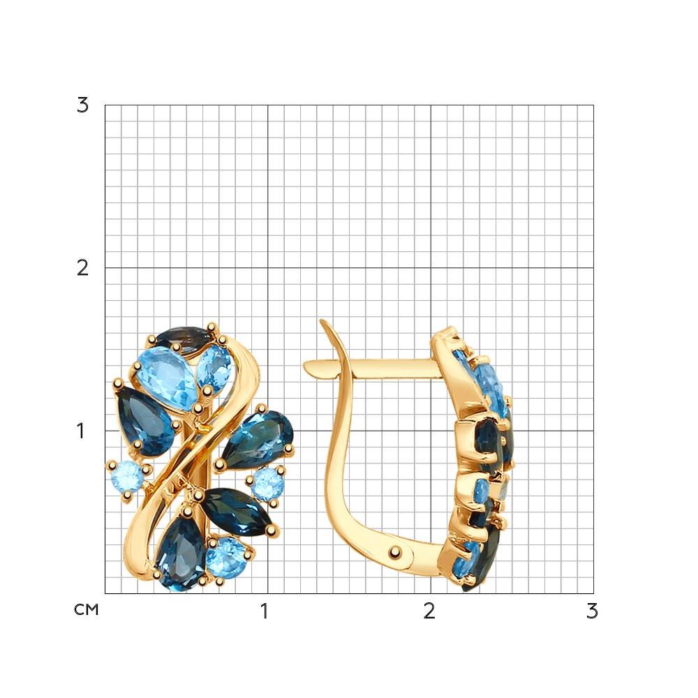 Золотые серьги 585 пробы с голубыми и синими топазами