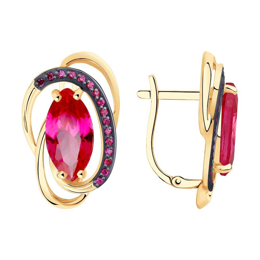 Золотые серьги 585 пробы с корундами(синт.)