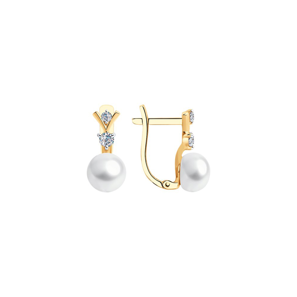 Золотые серьги 585 пробы с жемчугом и фианитами