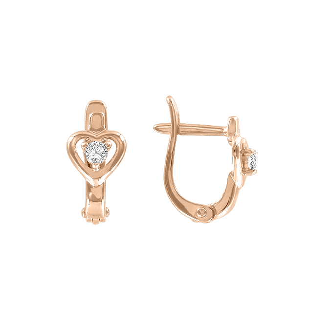 Милые детские серьги из красного золота 585 пробы с фианитами, высотой ≈ 10 мм, с английским замком.