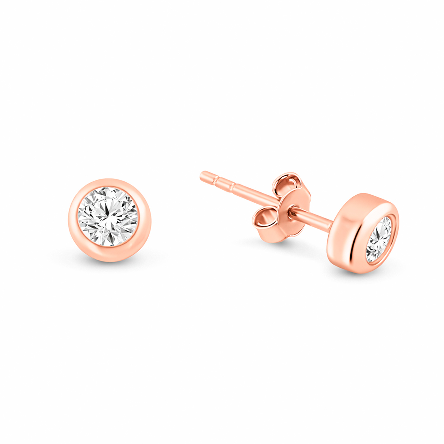 Ohrstecker aus 585 Rotgold, mit Phianiten, Durchmesser ≈ 4,5 - 5 mm.