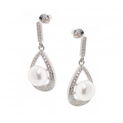 Ohrringe aus 925 Silber mit Perlen und farblosen Zirkonia
